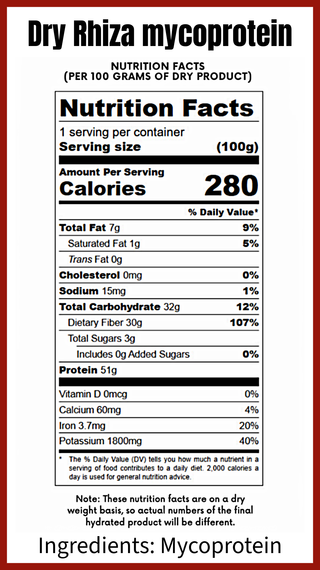 Single ingredient declaration: Either “mycoprotein” or “mycelium.”